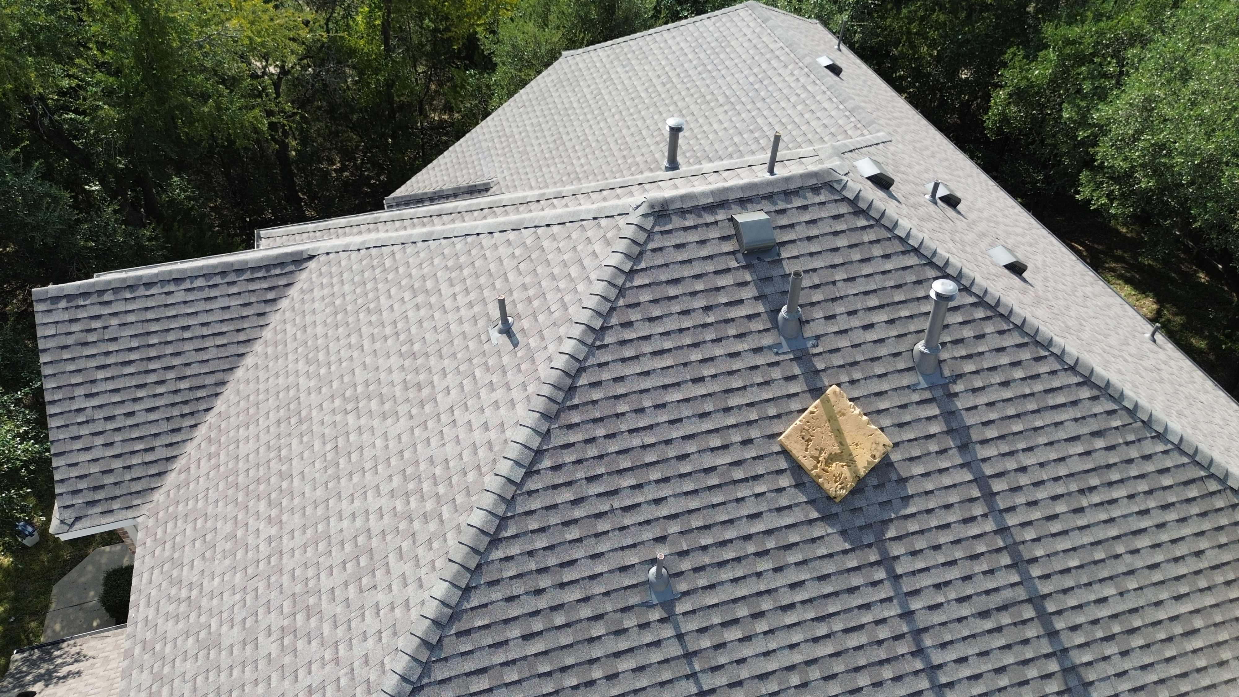We installed a GAF HDZ shingle with GAF Z-Ridge and ice and water shields. Shingle color was Weather Wood.